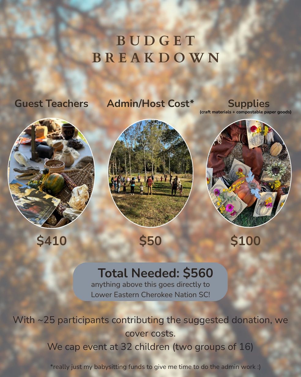 Cost should not be a barrier—everyone is welcome, regardless of ability to donate! Here’s a quick look at how your donations make this day possible — and how anything above our base need supports the Lower Eastern Cherokee Nation SC.